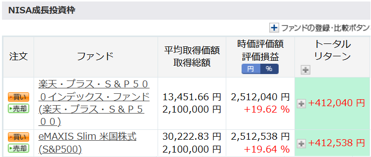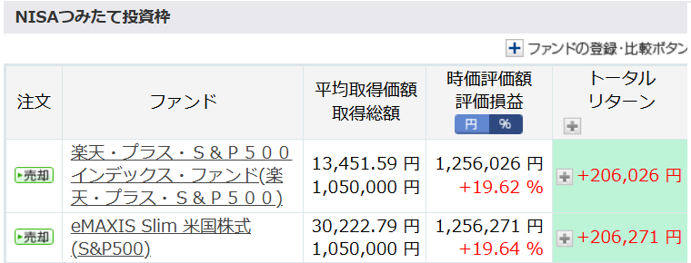2024年から開始した楽天S&P500とeMAXISSlimS&P500への投資成績は
