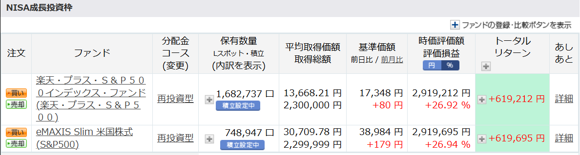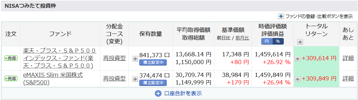 2024年から開始した楽天S&P500とeMAXISSlimS&P500への投資成績は