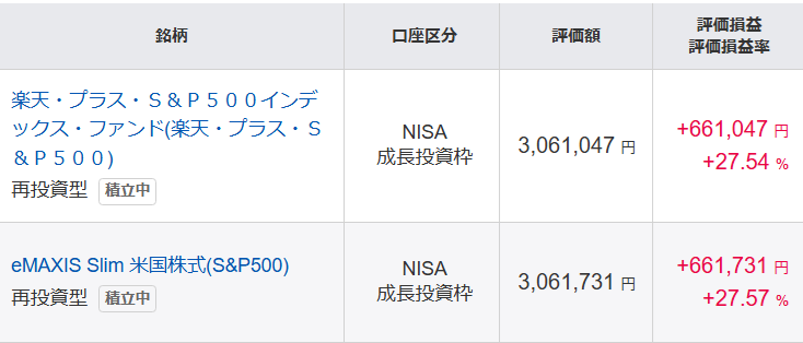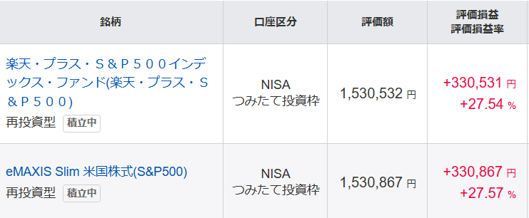 2024年から開始した楽天S&P500とeMAXISSlimS&P500への投資成績は
