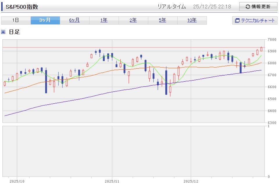 出典:楽天証券 12月のS&P500は最終的に6900ポイントを超えました。