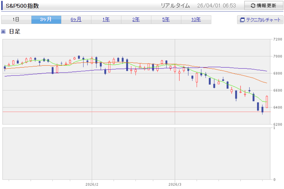2026/3のS&P500指数は減少